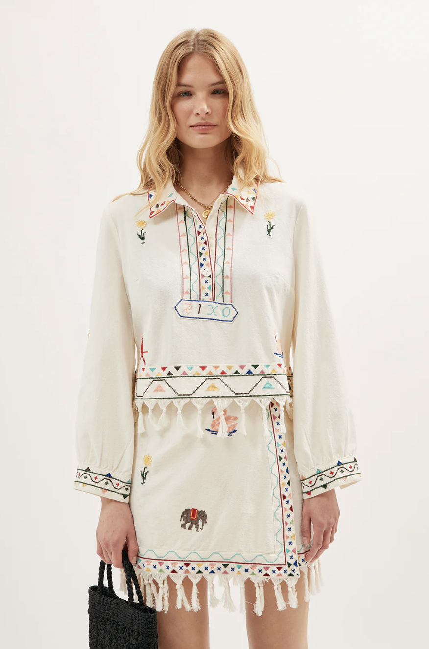British brand Rixo have been going from strength to strength recently and this boxy fringed set caught my eye when I spotted it on The Hambledon website (yet to find it on Rixo still!). It has all the elements I love - colourful embroidery for that handcrafted feel, vintage boho spirit and a relaxed boxy silhouette. I can see myself wearing this in Portugal and mixing the top with denim shorts too. I also spotted it as a dress version here. Holiday dreaming in this one for sure!